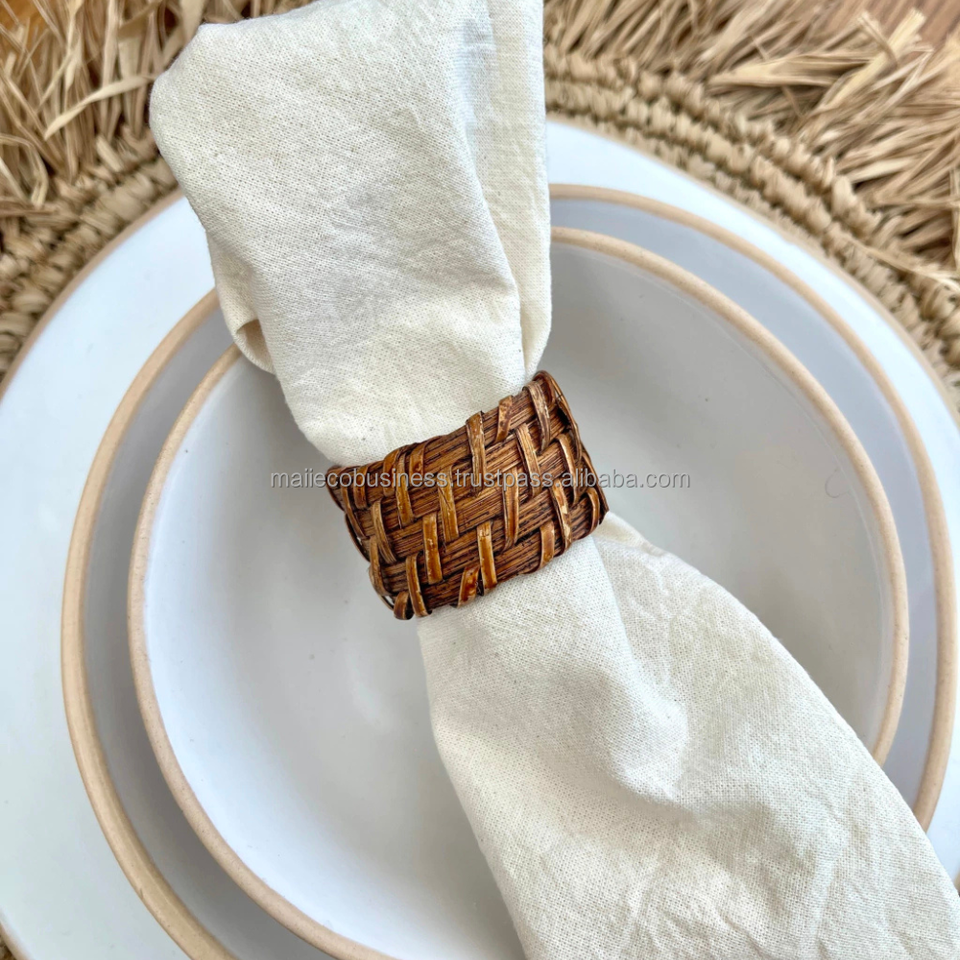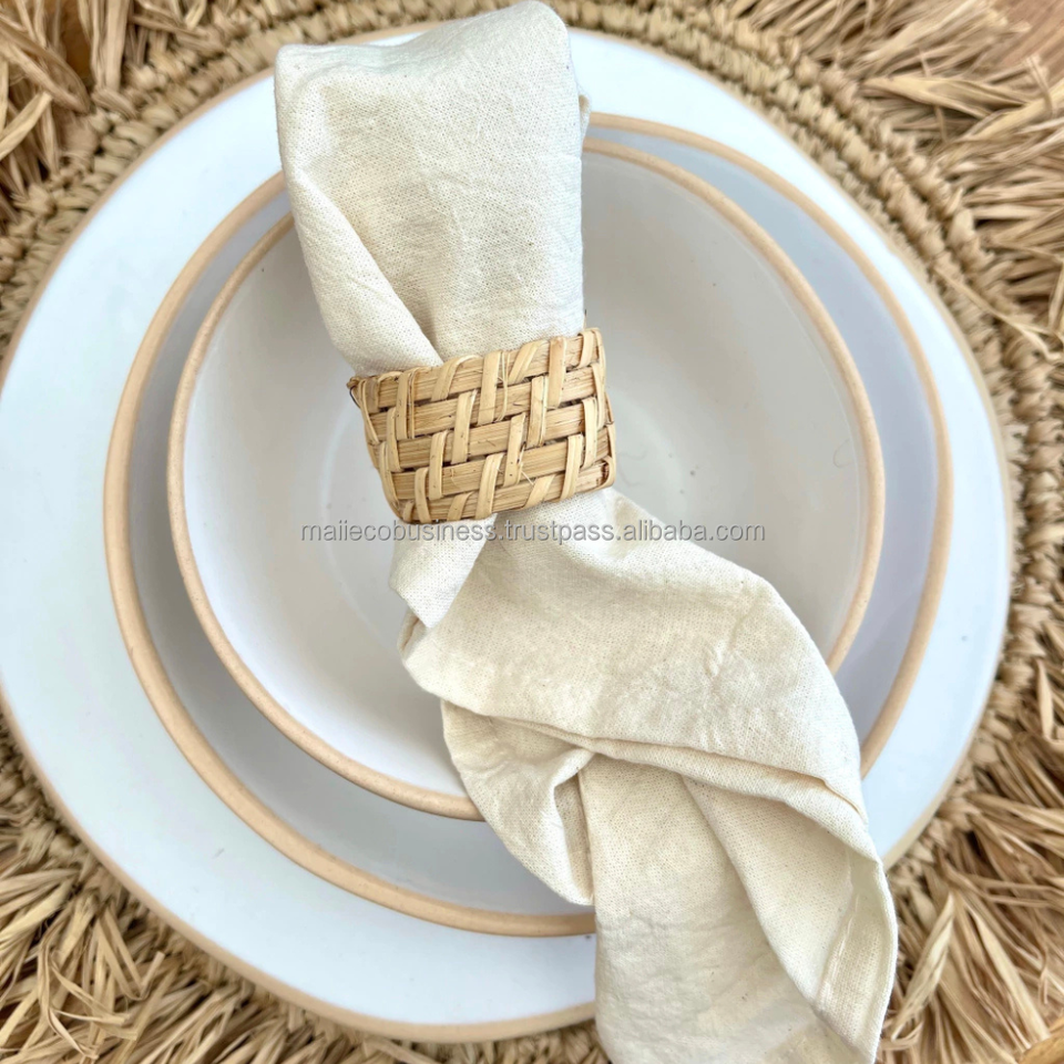 Best Selling Bohemian Rattan Wicker Napkin Rings High Quality Custom Packaging for Restaurants and Parties Vietnam Wholesale