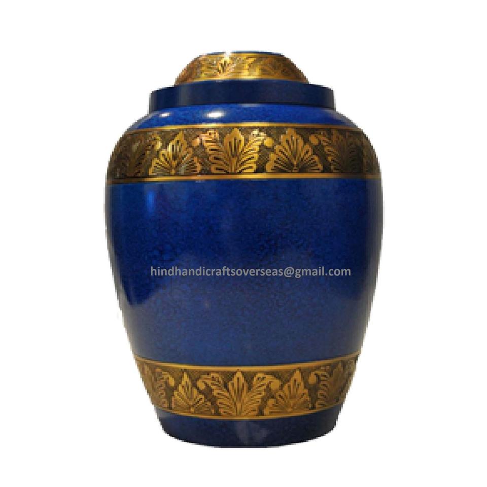 โกศใส่เถ้ากระดูกทองเหลืองสำหรับผู้ใหญ่ทำจากโลหะสีฟ้าสำหรับใส่เถ้ากระดูกมนุษย์