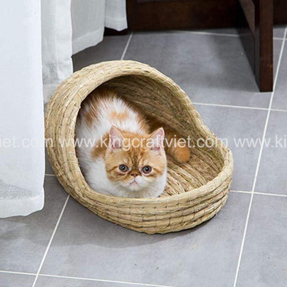 เตียงผักตบชวาหวายไม้ไผ่สานมือสำหรับสัตว์เลี้ยงบ้านสุนัขแมวแพ็คได้ตามต้องการ
