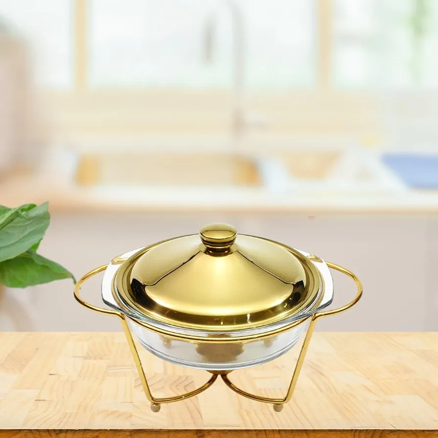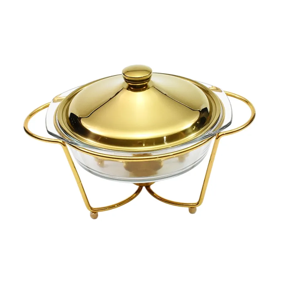 จานอุ่นอาหารจานร้อนชุบทองสำหรับอาหารบุฟเฟ่ต์