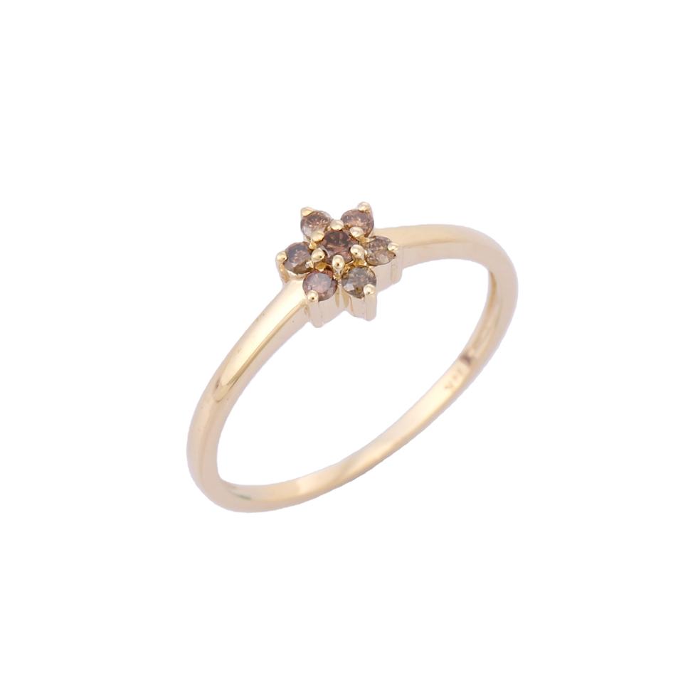 แหวนเพชรทรงดอกไม้สีน้ำตาลธรรมชาติเจียระไนแบบบริลเลียนท์สำหรับเด็กขายดีที่สุด ทองคำแท้ 14K อัญมณีหรูหราทันสมัย
