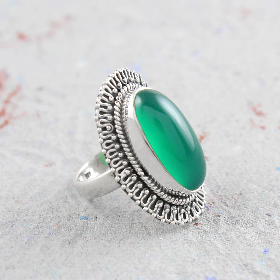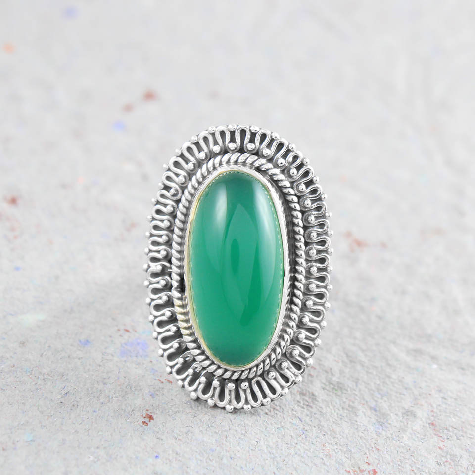 ที่ขายดีที่สุดคลาสสิกการออกแบบธรรมชาติรูปไข่สีเขียวนิลบิ๊กพลอยฝาการตั้งค่า925แหวนเงิน Boho เครื่องประดับ
