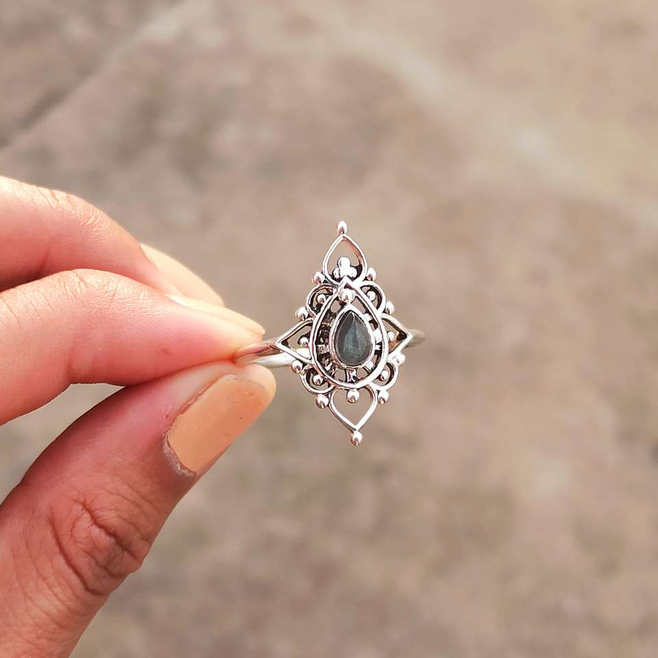 แหวนเงินแท้ 925 ประดับพลอยลาบราดอไรต์ธรรมชาติ ดีไซน์คลาสสิกขายดี สินค้ามาใหม่