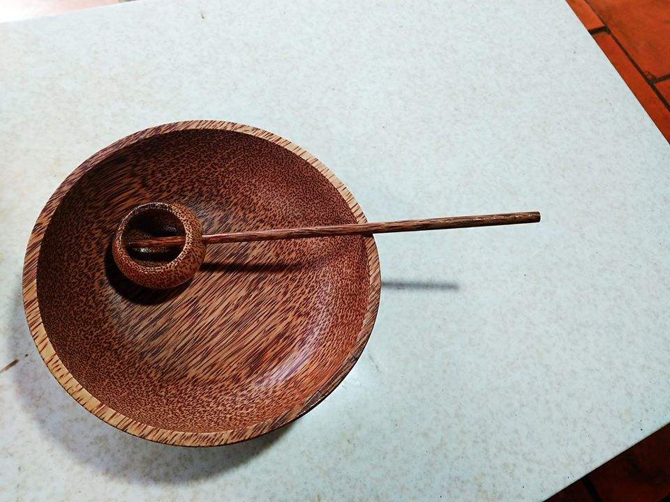 ชามไม้มะพร้าวแบบเรียบสำหรับเสิร์ฟอาหารมีสไตล์เลือกขนาดได้ตามต้องการบัวสีน้ำเงินจากเวียดนาม