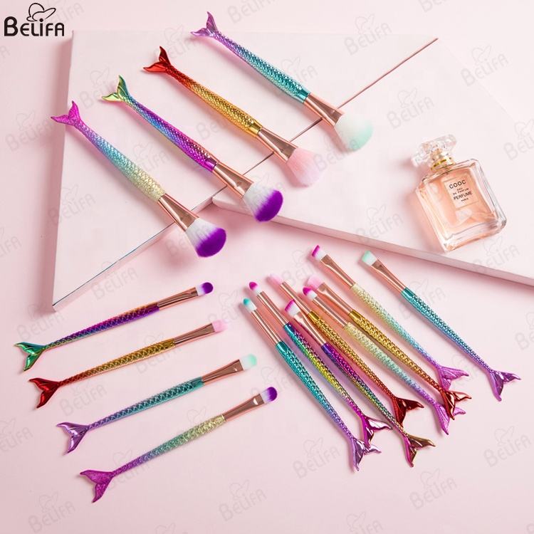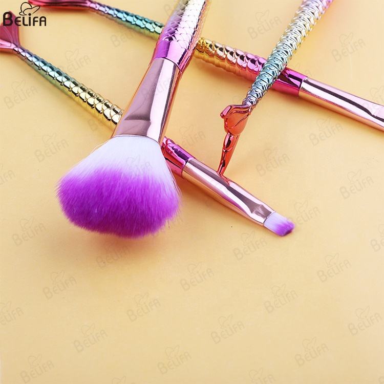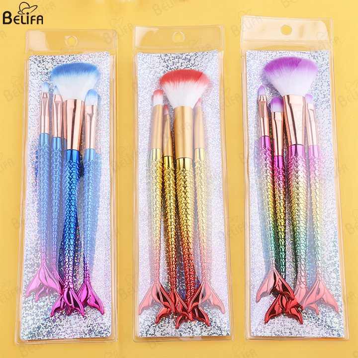 ที่ขายดีที่สุดที่มีสีสันผมนุ่มแปรงแป้งหลวมความงามเครื่องมือแต่งหน้า4ชิ้นนางเงือกชุดแปรงเครื่องสําอางหางปลาแปรงแต่งหน้า