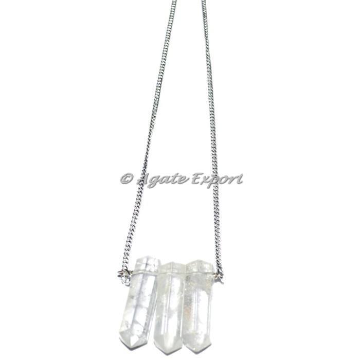 สร้อยคอทรงดินสอทำจากคริสตัลควอตซ์พร้อมจี้ทองประดับอัญมณีลูกปัดแฟชั่น
