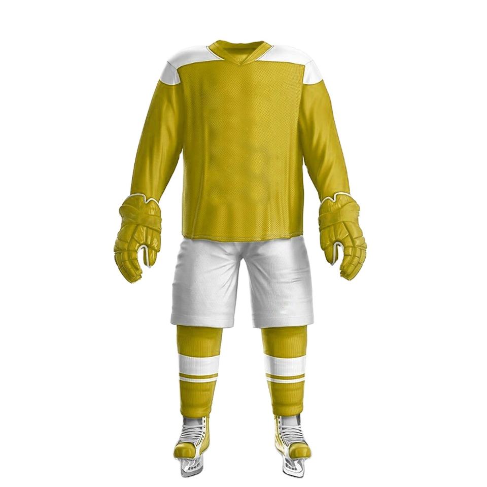 ชุดยูนิฟอร์มฮอกกี้น้ำแข็งแบบสั่งทำขายดีที่สุด ระบายอากาศได้ดี แห้งเร็ว พิมพ์ลายแบบซับลิเมชั่น ผ้าเนื้อนุ่ม บริการ OEM แบบชุดสำเร็จรูป
