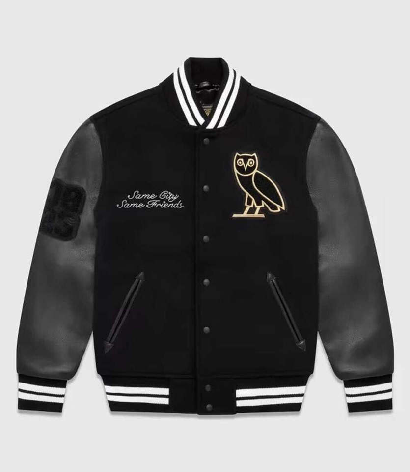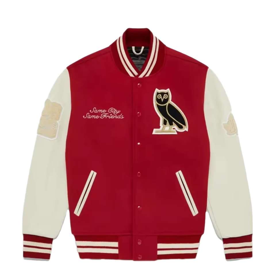 แจ็คเก็ตเบสบอลแบบ Varsity ผ้าแคนวาส สไตล์ OVO คุณภาพสูง ปรับแต่งได้ตามต้องการสำหรับผู้ชาย ขายดีที่สุด พร้อมปกตั้งด้านหน้า