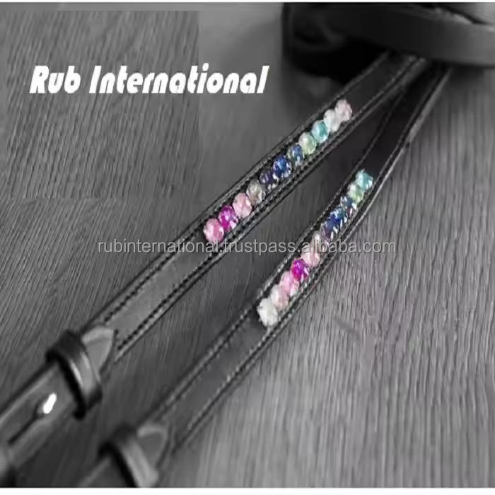 สายจูงม้าหนังพร้อมบังเหียนคริสตัลสายคล้องคอสำหรับขี่ม้าโลโก้ออกแบบได้ตามต้องการ