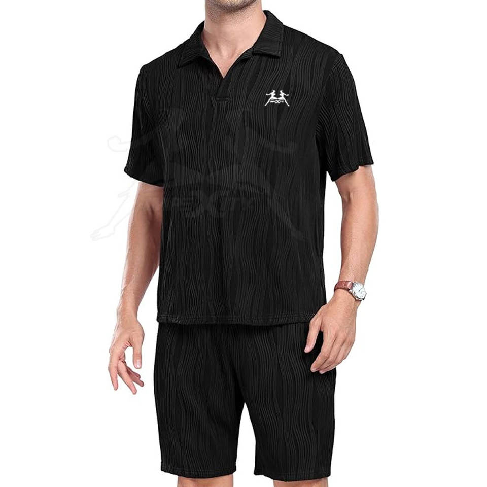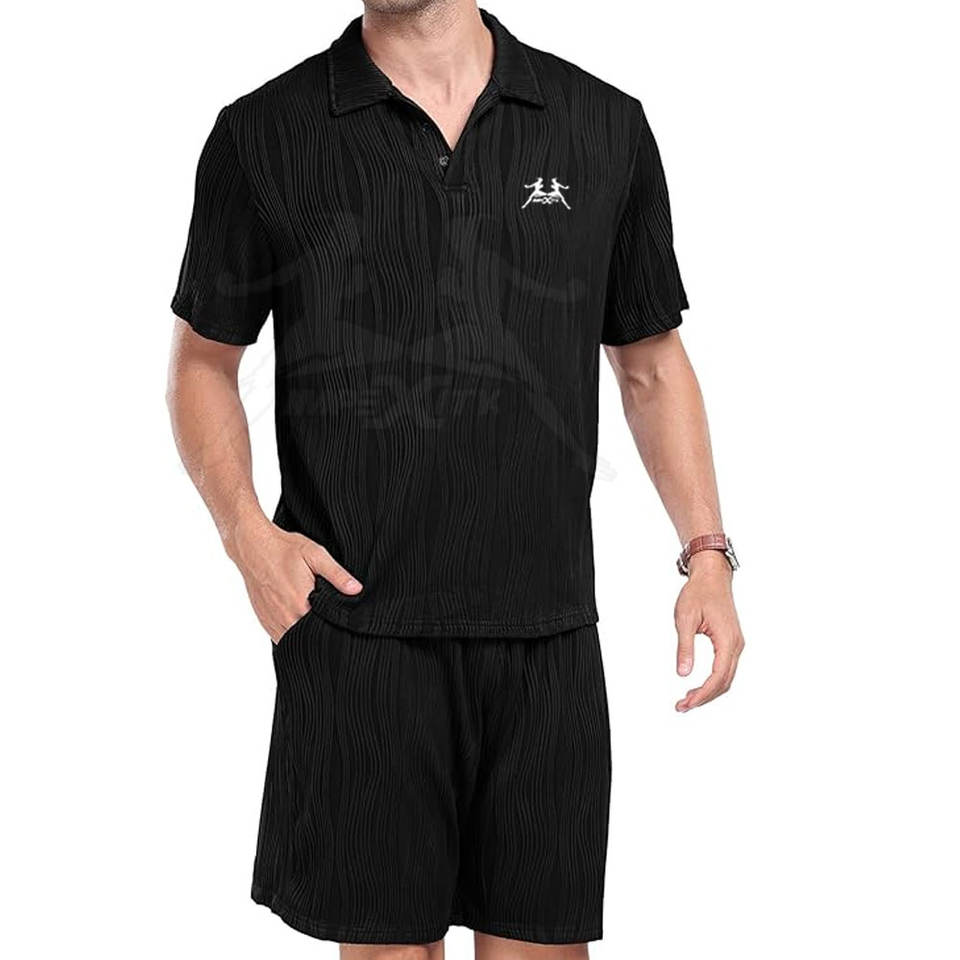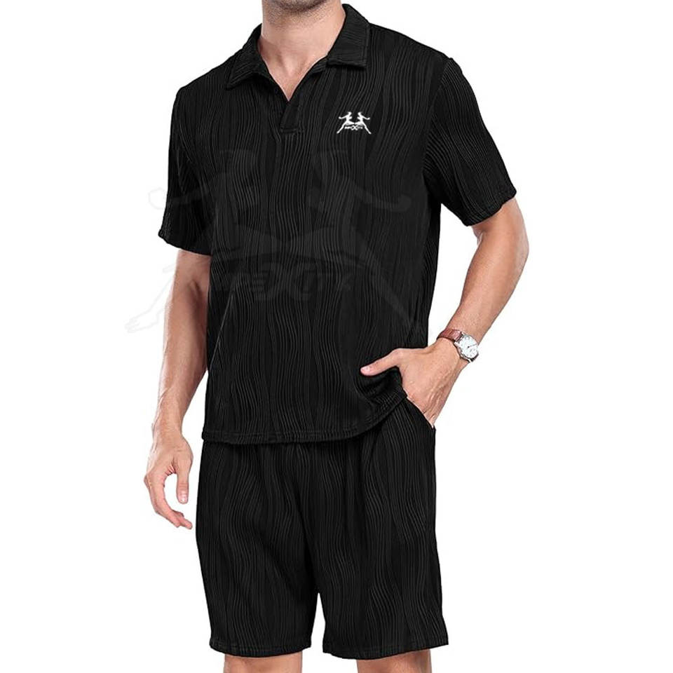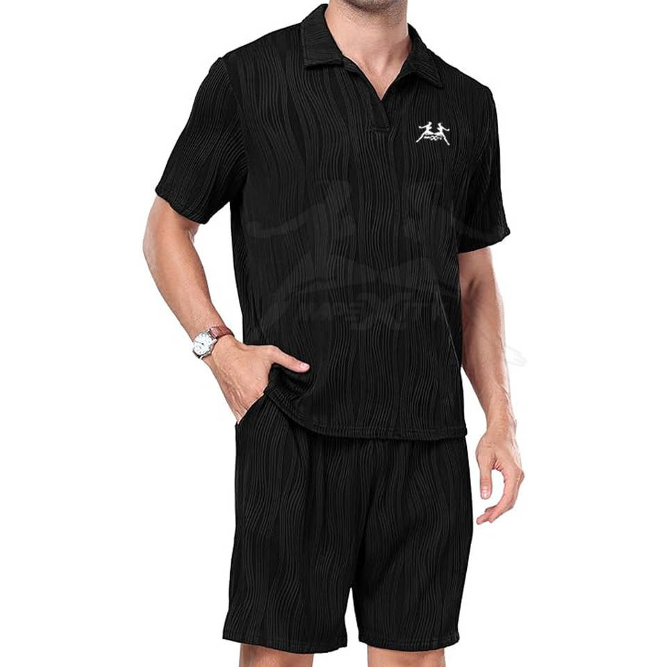 เซ็ตเสื้อโปโลและกางเกงขาสั้นสำหรับผู้ชายเสื้อโปโลสองชิ้นและกางเกงขาสั้นออกแบบโลโก้ได้ตามต้องการ