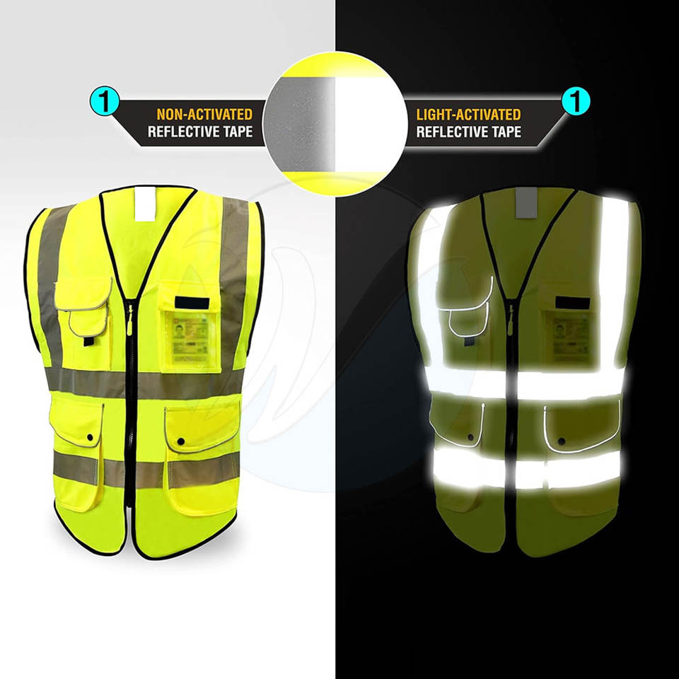 เสื้อกั๊กนิรภัย ANSI Class 1 แบบสั่งทำพิเศษ ขายดีที่สุด พร้อมไฟ LED กันน้ำ พิมพ์โลโก้ได้ วัสดุไนลอน/โพลีเอสเตอร์ สำหรับใช้งานกลางแจ้ง