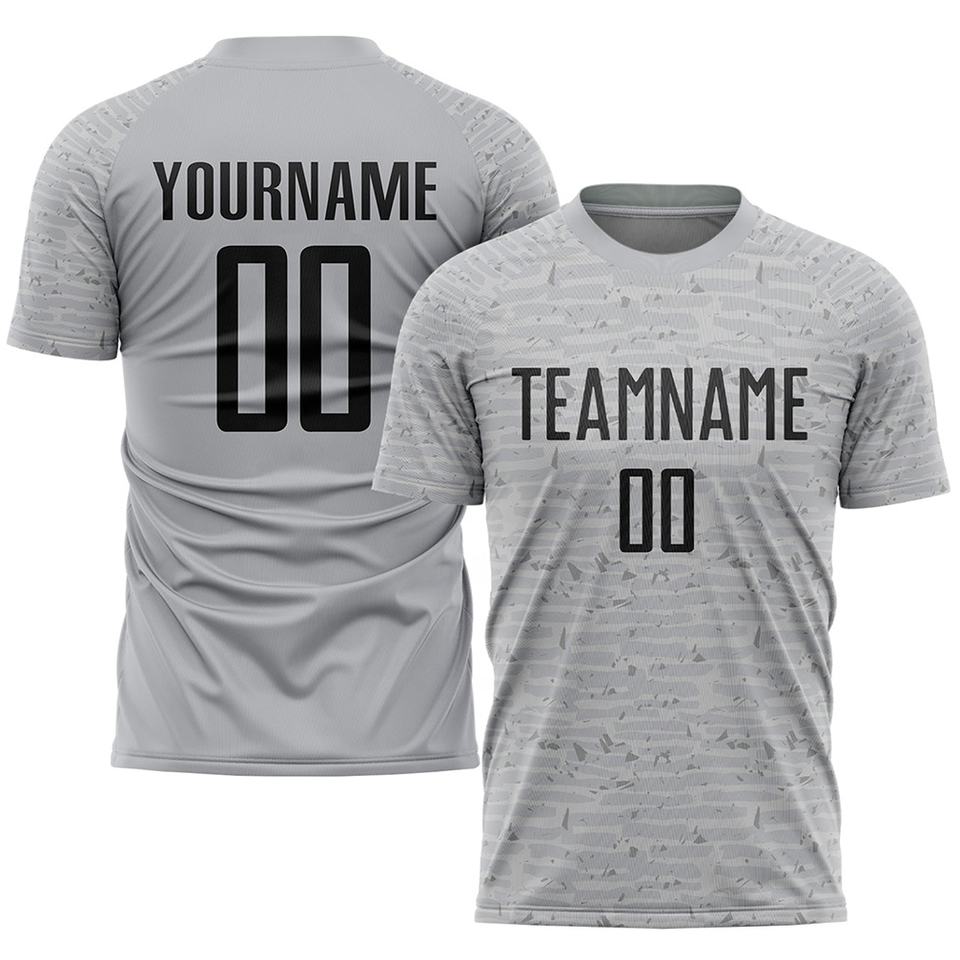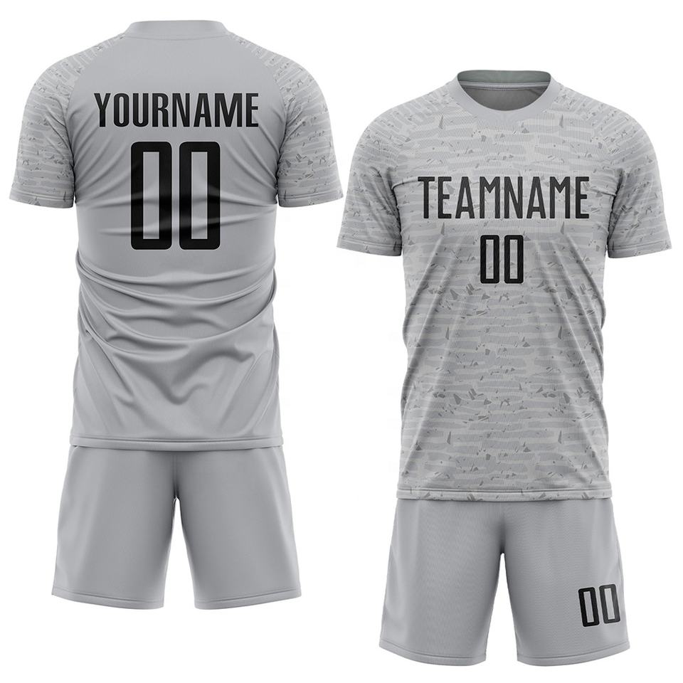 ชุดฟุตบอลผ้าเนื้อนุ่มสั่งทำพิเศษขายดีที่สุด ชุดทีมฟุตบอลฝรั่งเศส พร้อมพิมพ์ชื่อ คอกลม สีเทา