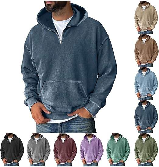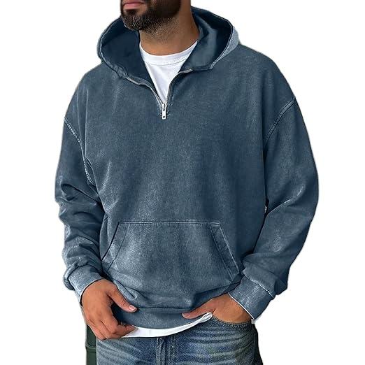 เสื้อฮู้ดผู้ชายสไตล์ลำลองแบบมีฮู้ดผ้าฟลีซฟอกสีกรดสำหรับฤดูหนาว