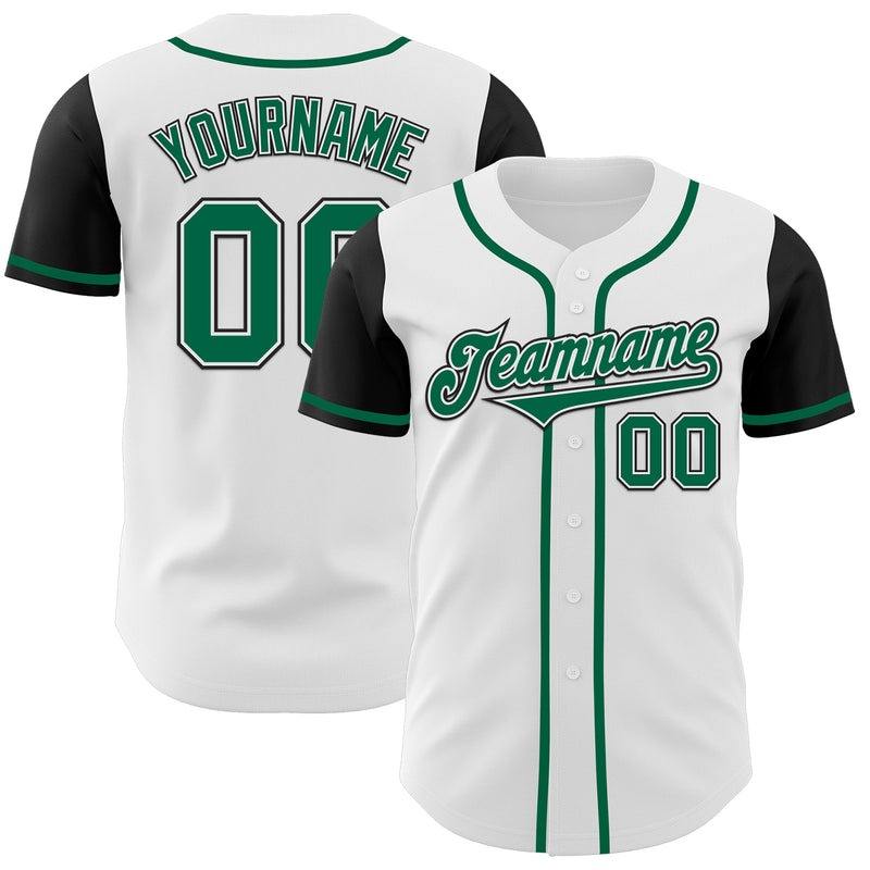 เสื้อเจอร์ซีย์เบสบอลสองสีแท้ Kelly Green-ดำสีขาวออกแบบได้ตามที่ต้องการ