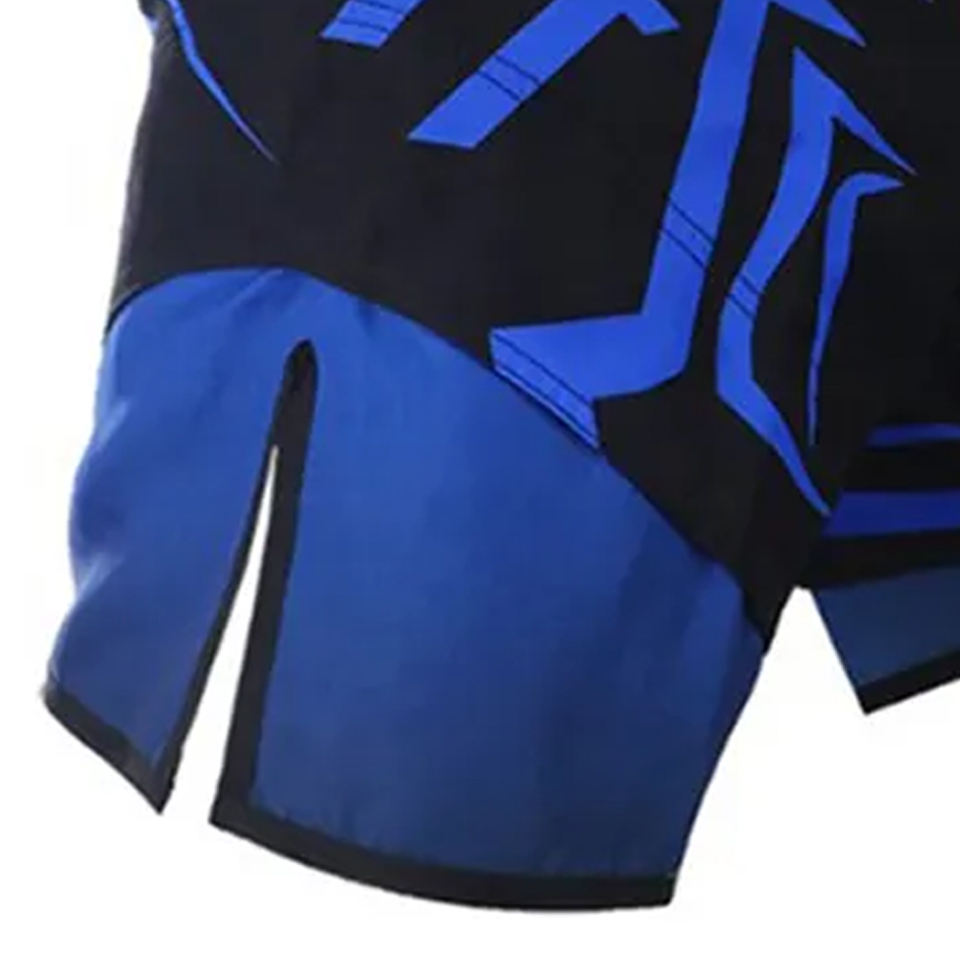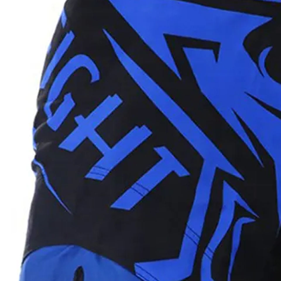 กางเกงขาสั้น MMA แบบทูโทนสีน้ำเงินและดำพิมพ์ซับลิเมชันทั่วทุกมุมกางเกงขาสั้นโพลีเอสเตอร์ระบายอากาศได้ดี