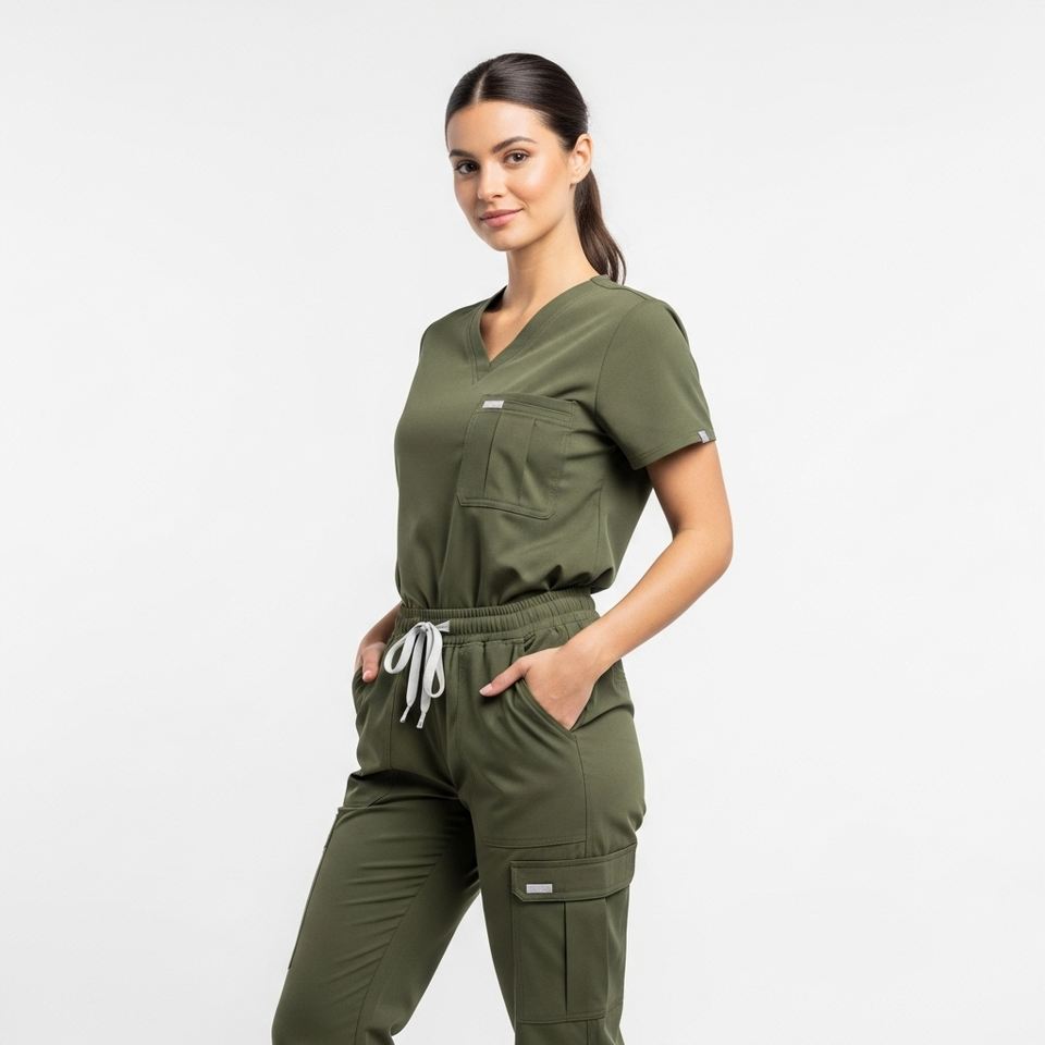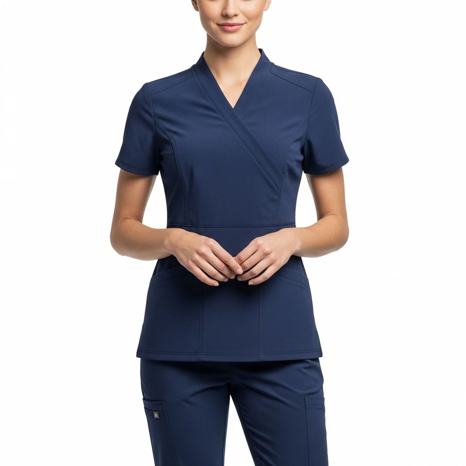 ชุดเครื่องแบบโรงพยาบาลสำหรับผู้หญิงคอวีแขนครึ่งแขนชุดสครับพยาบาลทางการแพทย์