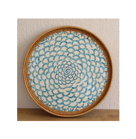 ถาดกลมฝังเปลือกหอยมุกแบบปรับแต่งได้ ขายดีที่สุด ถาดหวายสำหรับเก็บและเสิร์ฟอาหาร พร้อมผู้จำหน่ายขายส่ง