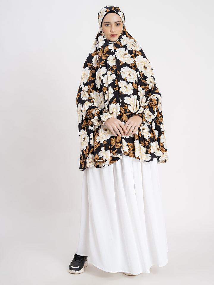 ชุดเดรสสุภาพเรียบร้อยและฮิญาบยาวสำหรับผู้หญิงมุสลิมแฟชั่นแฟนซีอิสลามสวดมนต์ชาติพันธุ์