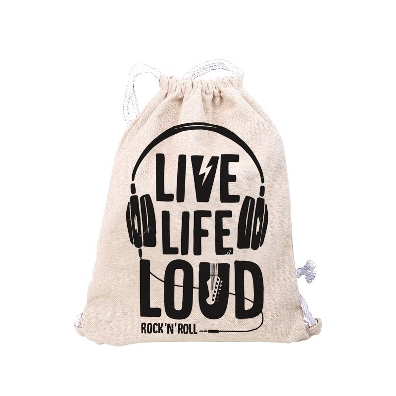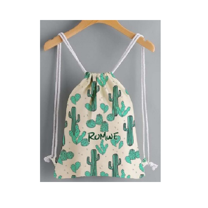กระเป๋าผ้าลินินแบบหูรูดวัสดุผ้าใบพิมพ์ถ่ายเทความร้อน