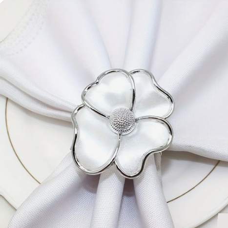 ที่ขายดีที่สุดตกแต่งเงินสําเร็จรูปดอกไม้แหวนผ้าเช็ดปากโลหะเรียบง่ายยังสง่างามสําหรับงานแต่งงานเฉลิมฉลองงานปาร์ตี้โต๊ะอาหารค่ํา