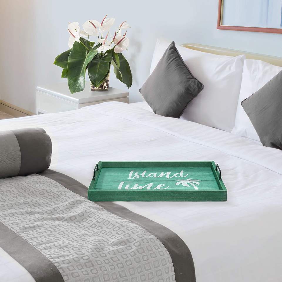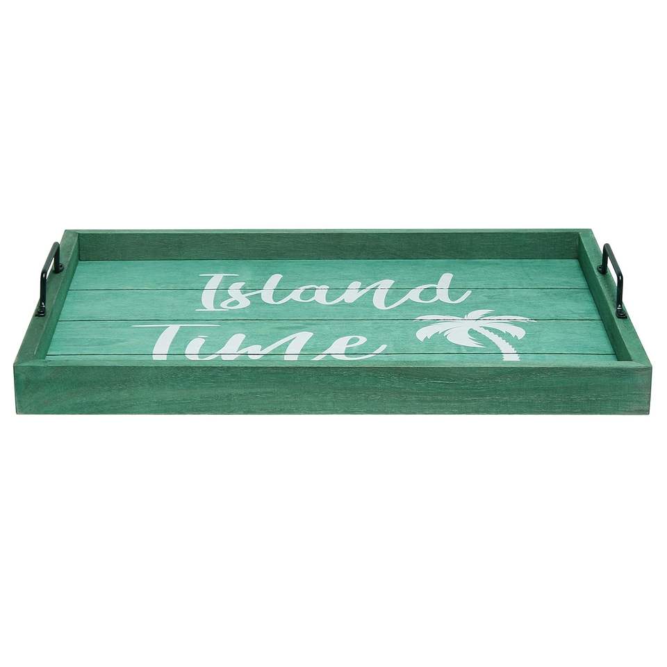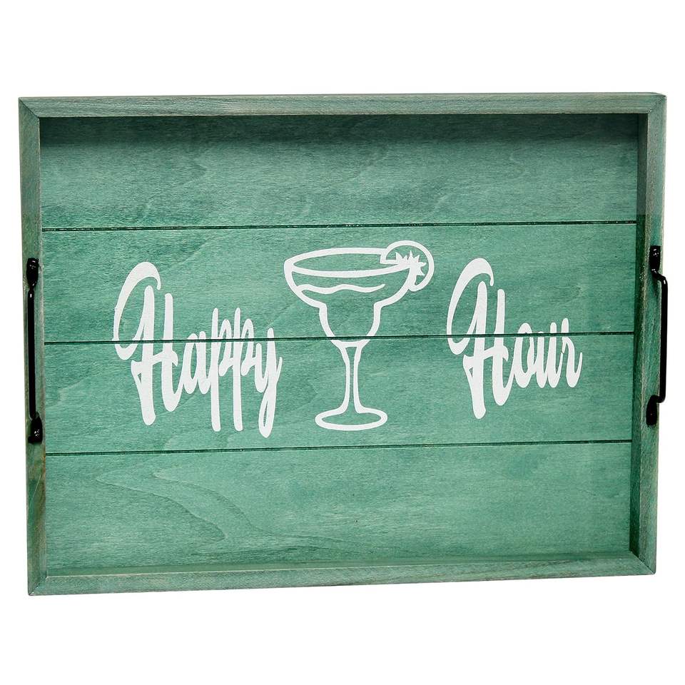 ถาดไม้สีเขียวลายพิมพ์สกรีนพร้อมหูจับเหล็กสีดำ ดีไซน์ขายดี พกพาสะดวก เหมาะสำหรับขาย