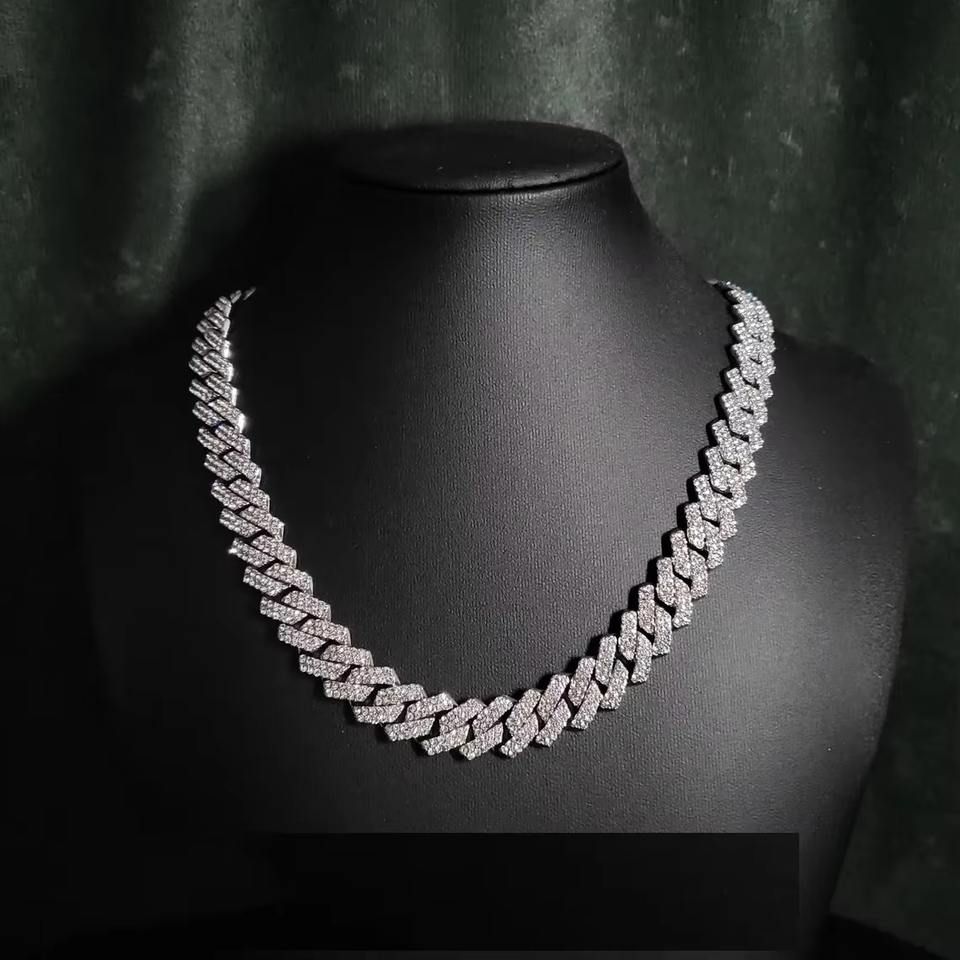 สร้อยคิวบาลิงค์ดีไซน์เนอร์ขายดี สไตล์สตรีทสุดเท่ สำหรับทุกเพศ ประดับโมอิสซาไนต์เงางาม ชุบทอง 18K พร้อมกรอบแบบรับรองคุณภาพ