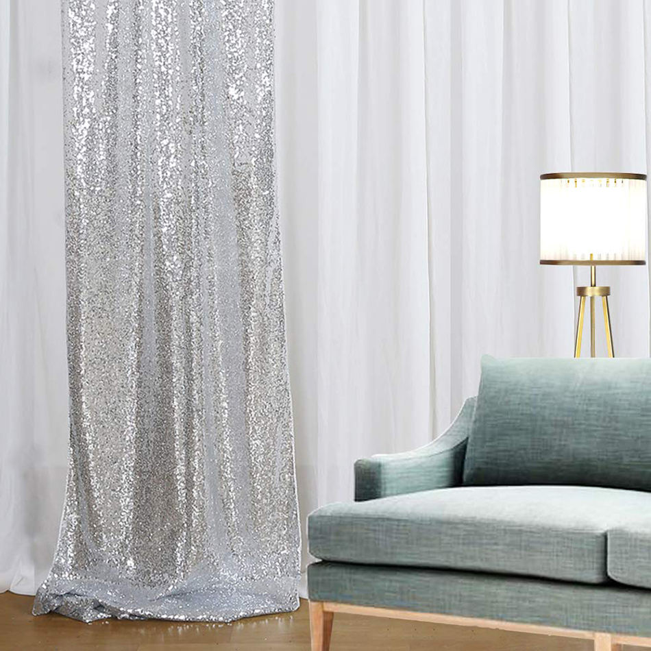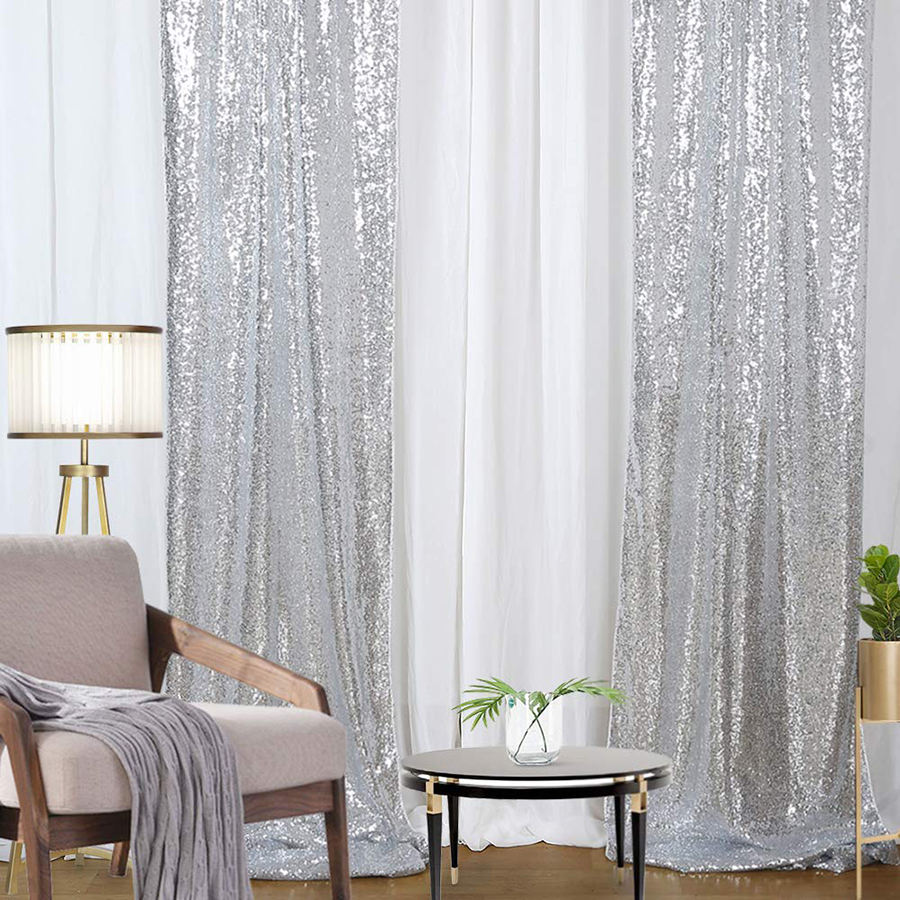 ผ้าม่านปักเลื่อมสีเงิน3มม. ทำจากโพลีเอสเตอร์100% ถ่ายภาพปาร์ตี้งานแต่งงานแบบถอดออกได้