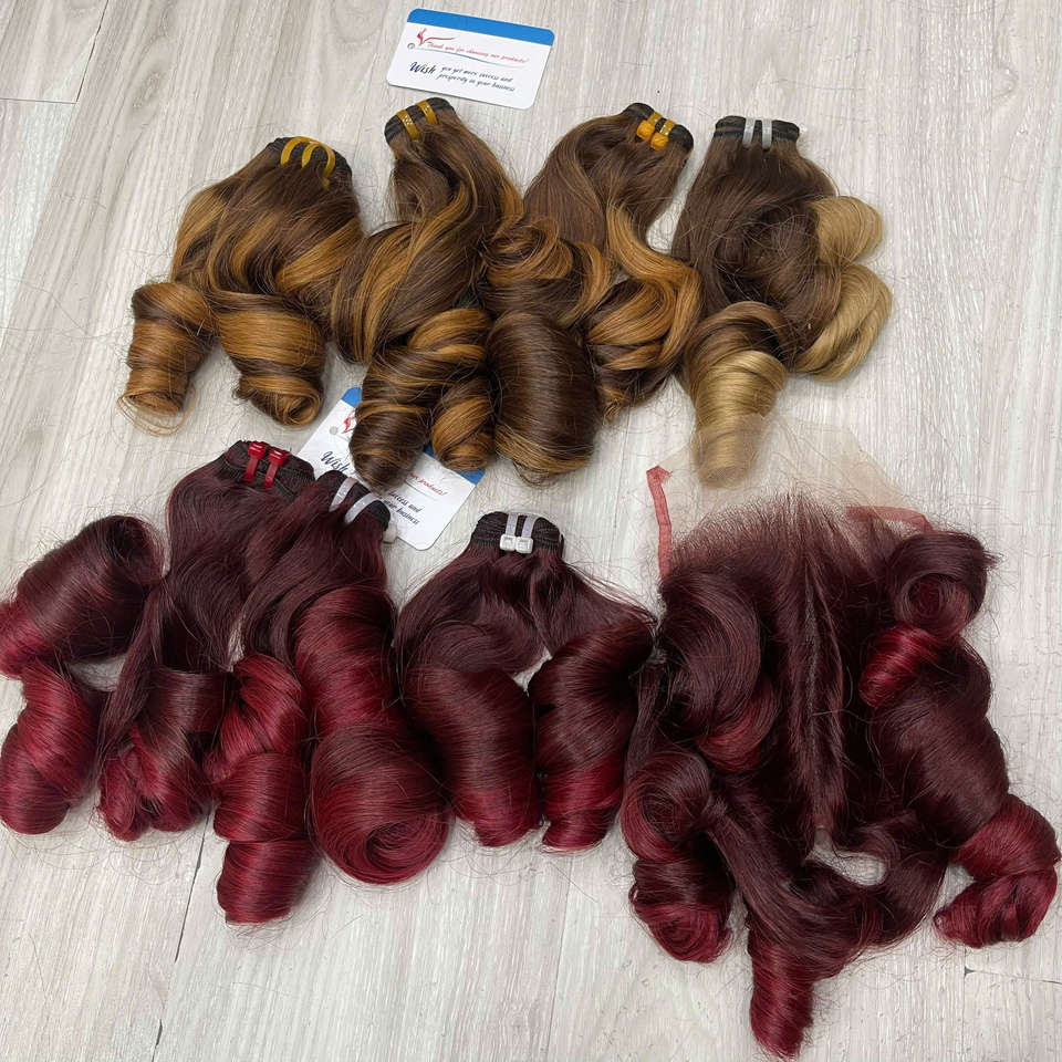 ต่อผมแบบเส้นคู่คุณภาพดีเยี่ยม ทรงลอนเด้งแบบอบไอน้ำ สีสันทันสมัย ขายดีที่สุด ผมแท้เวียดนาม 100%