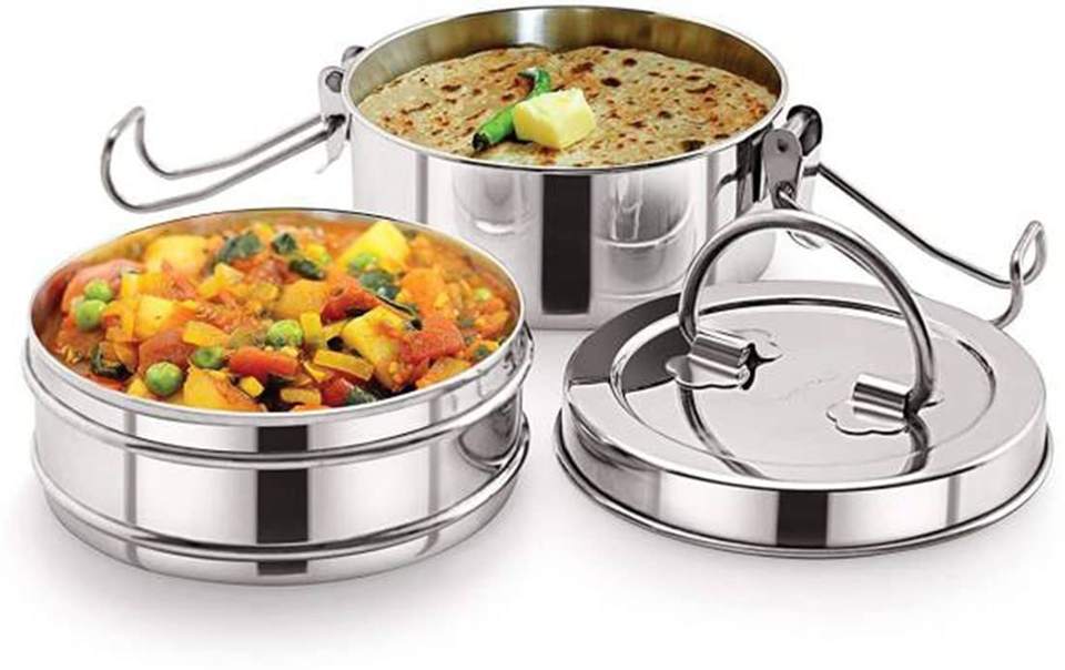 ที่ขายดีที่สุดง่ายต่อการพกพาอากาศแน่นหลายชั้นร้อนอบอุ่นสแตนเลสสแตนเลสปิ่นโตกล่องอาหารกลางวันภาชนะ Dabba