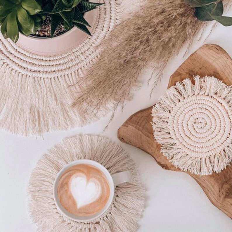 ที่รองแก้วและแผ่นรองแก้วชาผ้าทอมือแสนสบายสำหรับถ้วยกาแฟและเทียน