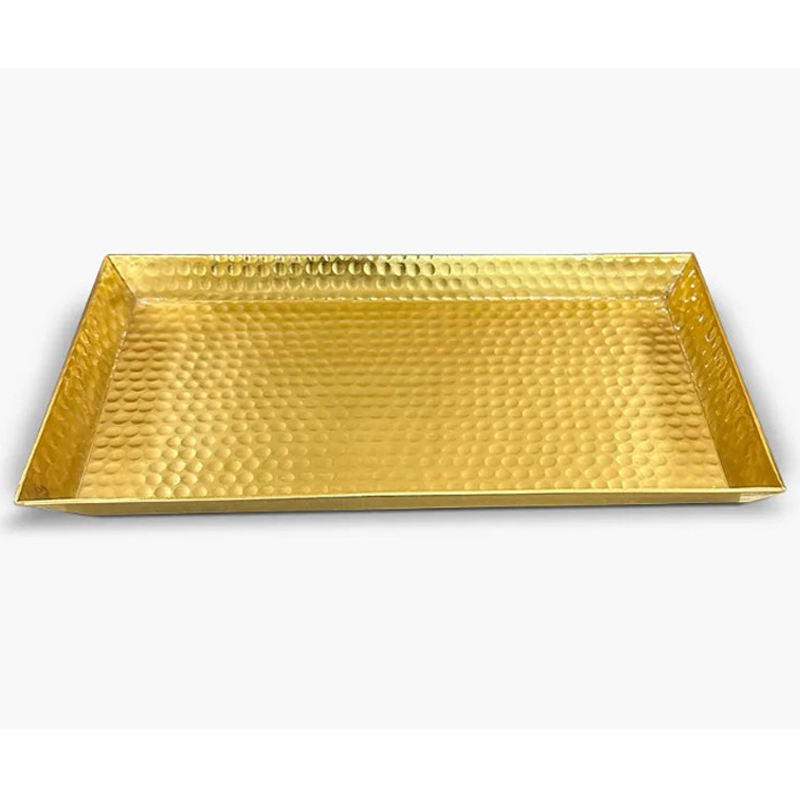 ถาดโลหะหรูหราขายดีที่สุด พร้อมหูจับสีทอง เหมาะสำหรับโรงแรม ใช้เสิร์ฟอาหารบนโต๊ะ สำหรับจัดเลี้ยง ขนมขบเคี้ยว และคุกกี้