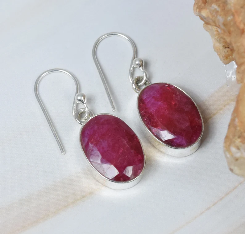 Best Selling 925 Sterling Silver Dangle Earrings Elegant Red Ruby Oval Shape Faceted Hook Classic July Birthstone Jewelry Gift
