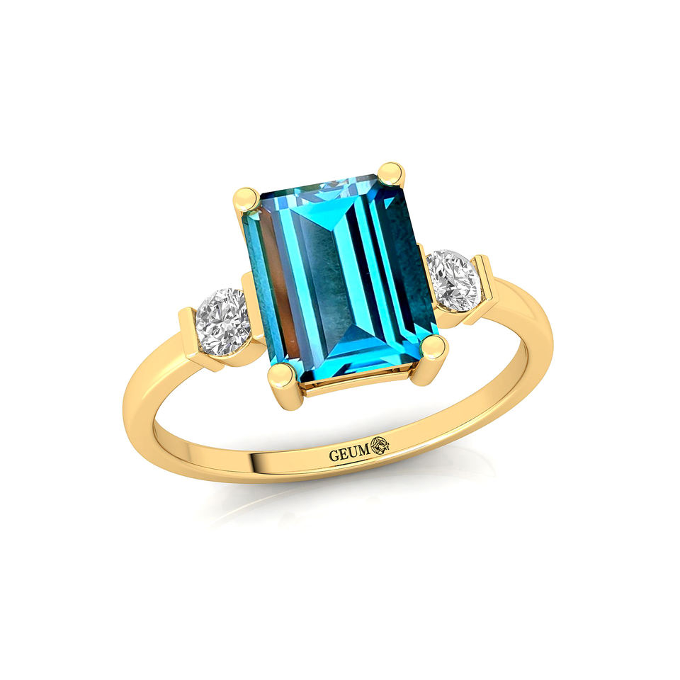 แหวนแต่งงานสีทึบ18K ประดับเพชรแท้สีฟ้าพลอยลอนดอนสีฟ้ามรกตตัดจากมรกต