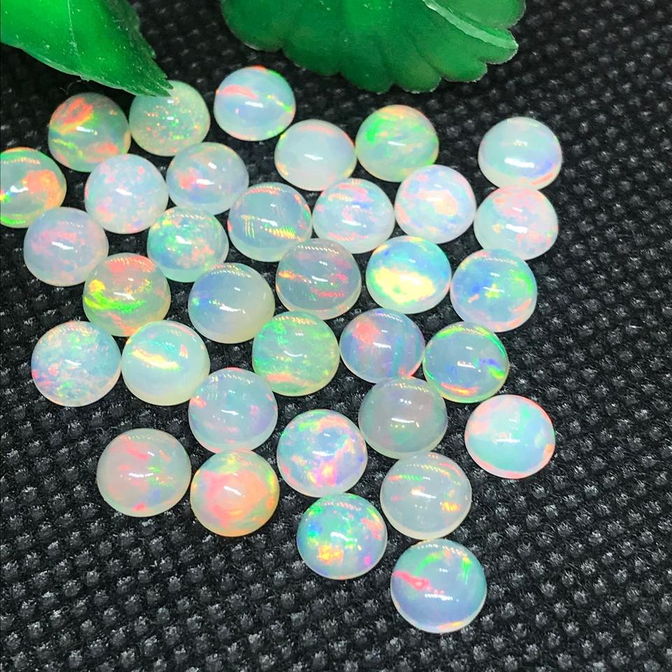 หินโอปอลทรงกลมเอธิโอเปีย7มม. แหวนพลอยโอปอลสีสดใสแบบโชว์หลังเบี้ยสำหรับแหวนหมั้นแหวนโอปอลราคาโรงงาน