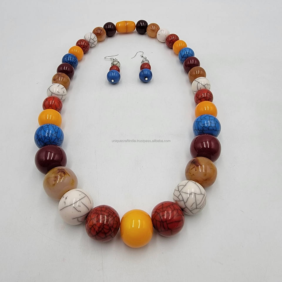 สร้อยคอลูกปัดเรซินชาติพันธุ์สำหรับผู้หญิงดีไซน์อินเทรนด์เรขาคณิตสำหรับงานแต่งงาน