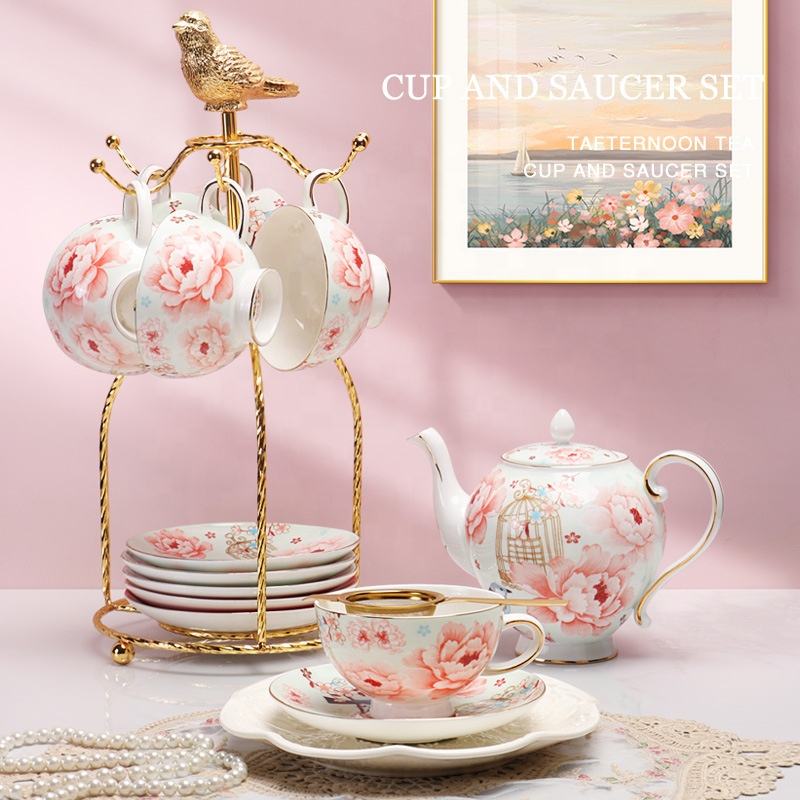 ชุดกาแฟลายดอกไม้และนกสไตล์ยุโรปขายดีที่สุด