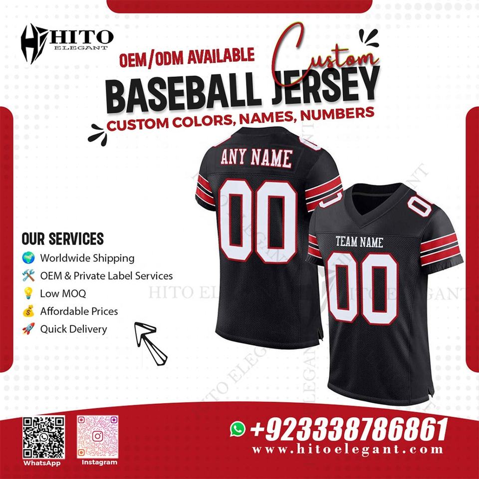 เสื้อเบสบอลคอวีสีดำและสีแดงเสื้อเบสบอลของผู้ชายดีไซน์ฟรีจากโรงงาน