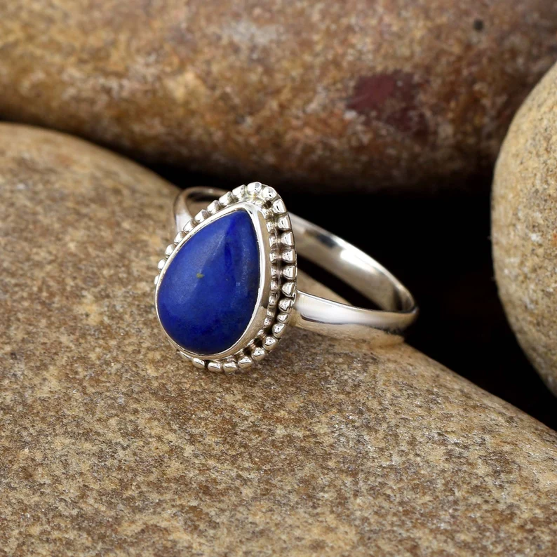 แฟชั่นขายดีที่สุดแหวน Lapis Lazuli 925เงินสเตอลิงสไตล์ Boho ทำด้วยมือเครื่องประดับขายส่งราคาโรงงาน