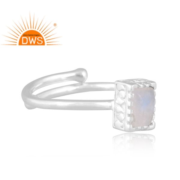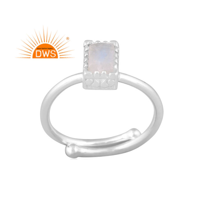 แหวนพลอยมูนสโตนสีรุ้งธรรมชาติปรับได้เครื่องประดับเงินสเตอร์ลิง