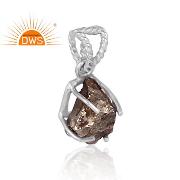 สร้อยคอจี้พลอยไพไรต์ธรรมชาติทำจากเงินสเตอร์ลิงแบบหยาบผลิตตามสั่ง