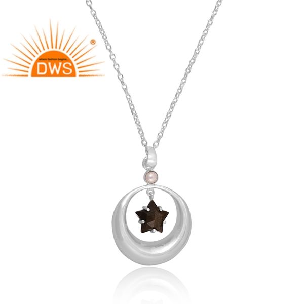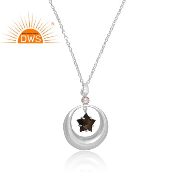 สร้อยคอจี้อัญมณีออบซิเดียนสีเงินสเตอร์ลิงสีทองมุกธรรมชาติผู้ผลิตเครื่องประดับตามสั่ง