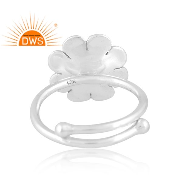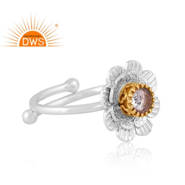 แหวนพลอยบุษราคัมธรรมชาติสีเงินแท้ดีไซน์ลายดอกไม้แหวนวางซ้อนกันได้