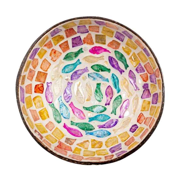 ชามมะพร้าวขนาดเล็ก ลายปลา ชามเปลือกมะพร้าว ราคาส่ง