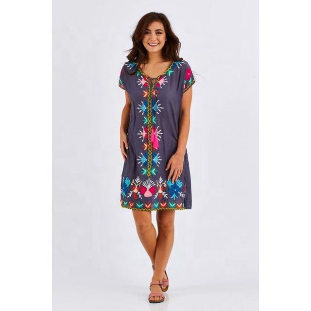 เสื้อคลุมผ้าฝ้ายปักลายดอกไม้ตัวหนาสำหรับผู้หญิงเดรสทรงหลวมลำลองตกแต่งสั้นสำหรับรีสอร์ทชายหาดฤดูใบไม้ร่วง