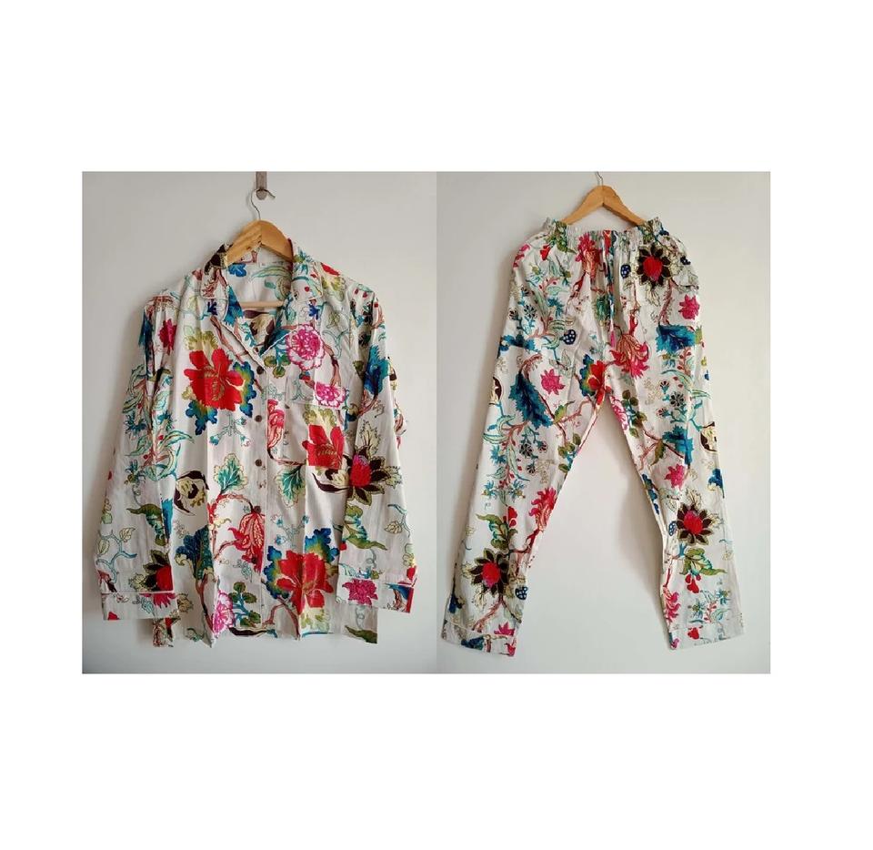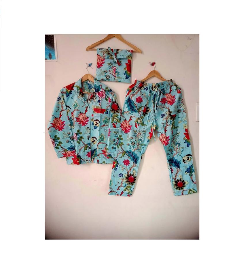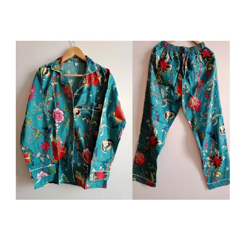 เซ็ตชุดนอนพิมพ์ลายดอกไม้สำหรับผู้หญิง,เซ็ตชุดนอนอินเดียชุดเพื่อนเจ้าสาวชุดใส่ชุดนอนผ้าฝ้าย