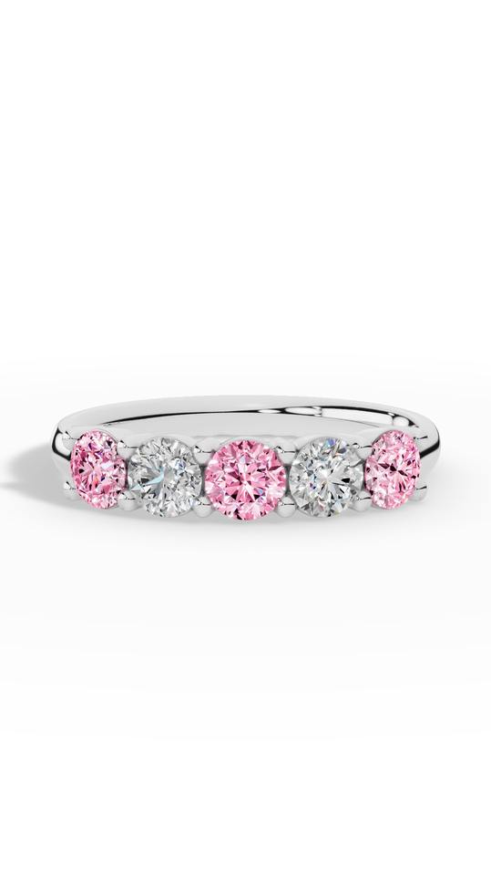 แหวนเพชรทรงกลมเจียระไนแบบเหลี่ยมเพชรพลอยสีชมพูอ่อนและสีขาว 5 เม็ด ฝังแบบฝรั่งเศส ขายดีที่สุด ทอง 18K เครื่องประดับชั้นดี