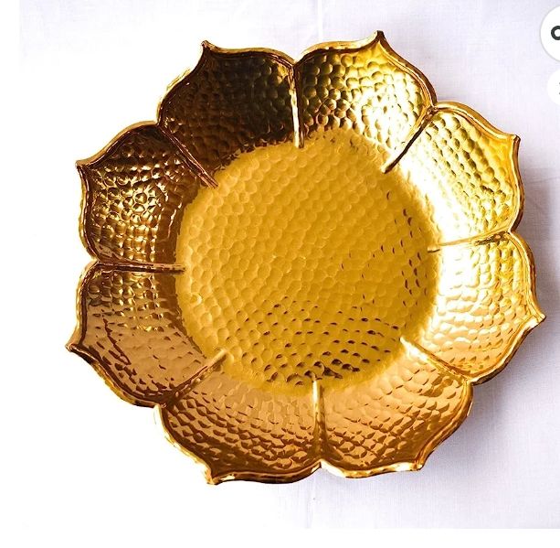 กระถางต้นไม้ทองเหลืองสีทองแบบลอย urli ลายดอกไม้หรูหราโลโก้ออกแบบได้ตามต้องการใช้กลางแจ้งสินค้าอินเดีย