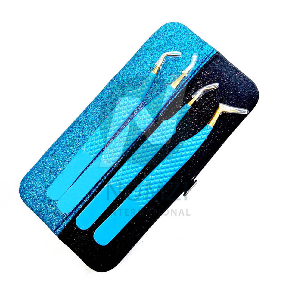 แหนบต่อขนตาสแตนเลสทนทานสีฟ้าปลายแหลมที่จับเพชรโทนทองคำขาว
