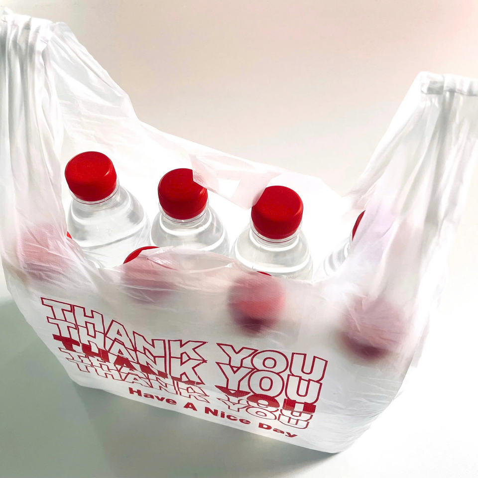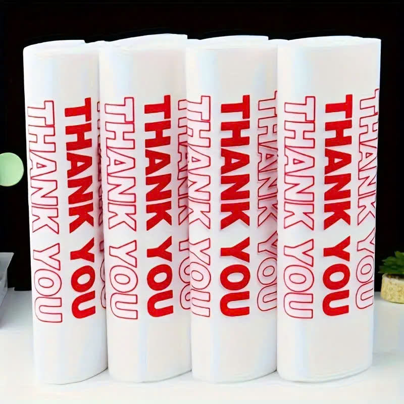 ถุงเสื้อยืดจาก HDPE/LDPE ขายดีที่สุดสำหรับซูเปอร์มาร์เก็ตวัสดุรีไซเคิลทนทานทนทานมีลายพิมพ์โลโก้ขอบคุณ