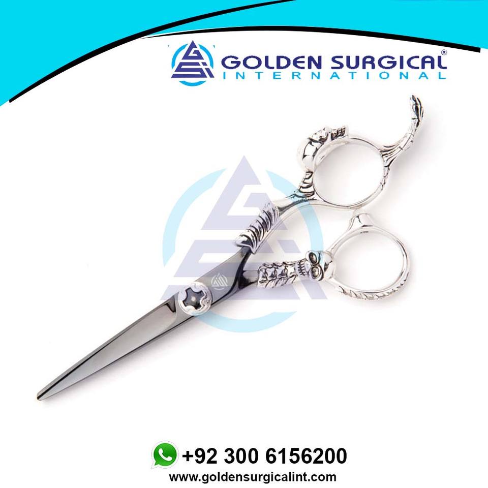 กรรไกรตัดผมแบบบาง ดีไซน์สวย ด้ามจับรูปหัวกะโหลก สำหรับช่างทำผมมืออาชีพ